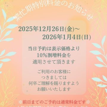 ◎年末年始の事前予約は通常価格でご案内可能です◎