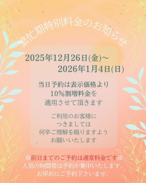 ◎年末年始の事前予約は通常価格でご案内可能です◎